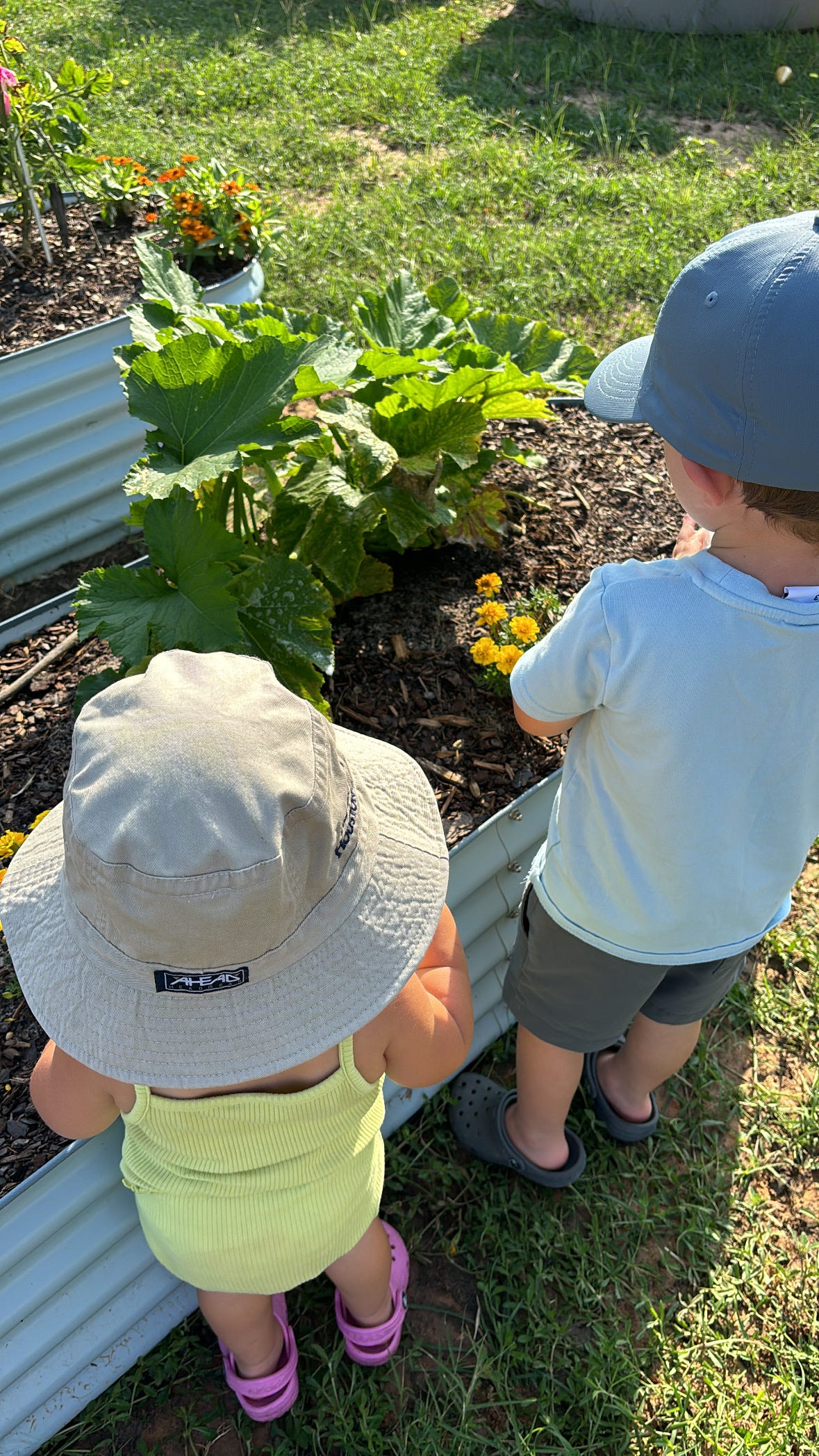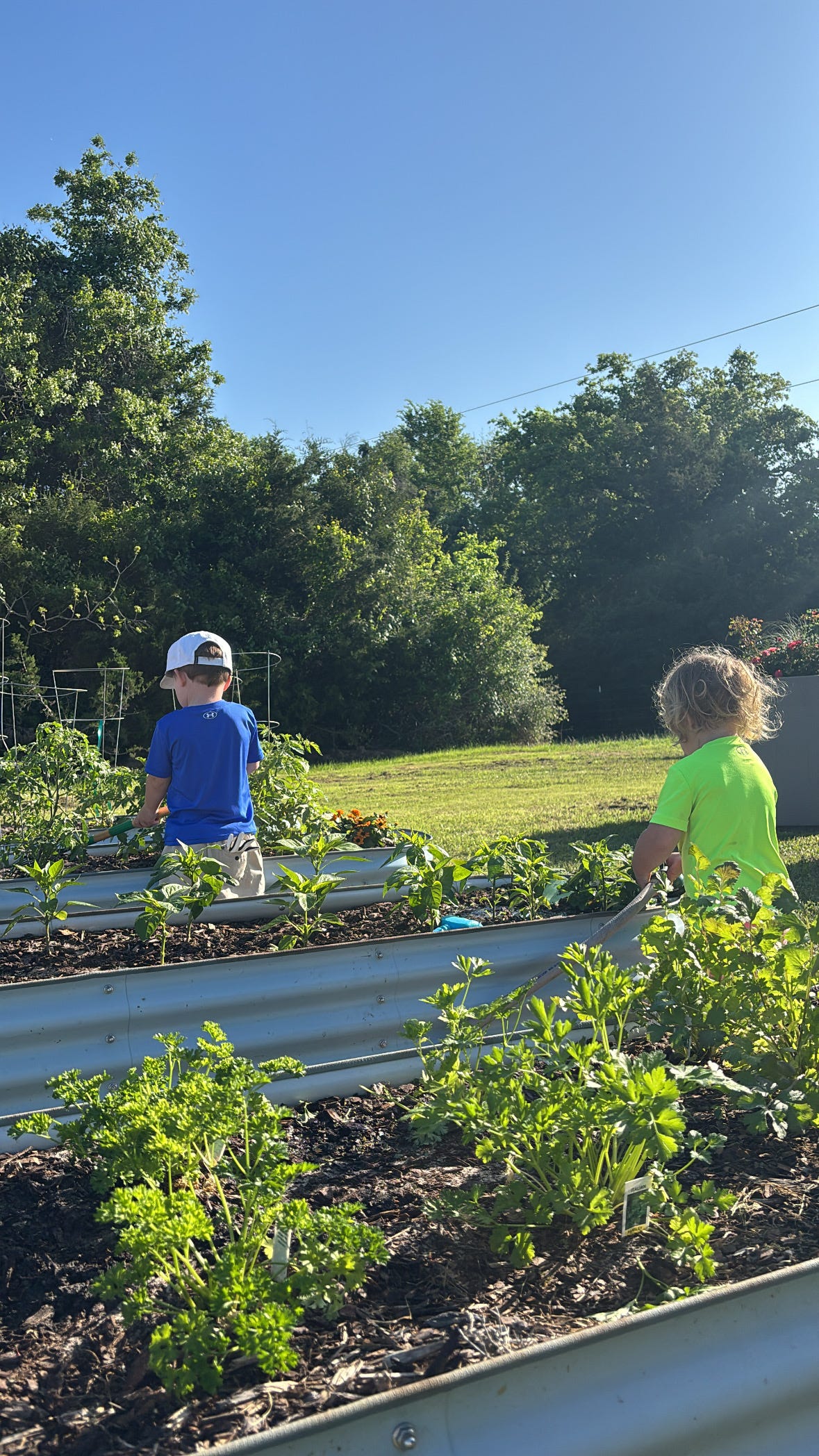 Children can even try new foods, expanding their palates! Perhaps they won’t eat a snap pea on their plate, but they’ll eat one off the vine in the garden. They look forward to our daily tending, knowing it’s part of our routine to go water or weed. They look for bugs, they chase butterflies, they make mud pies. It makes for a sweet, simple piece of childhood and nurtures their love for nature.