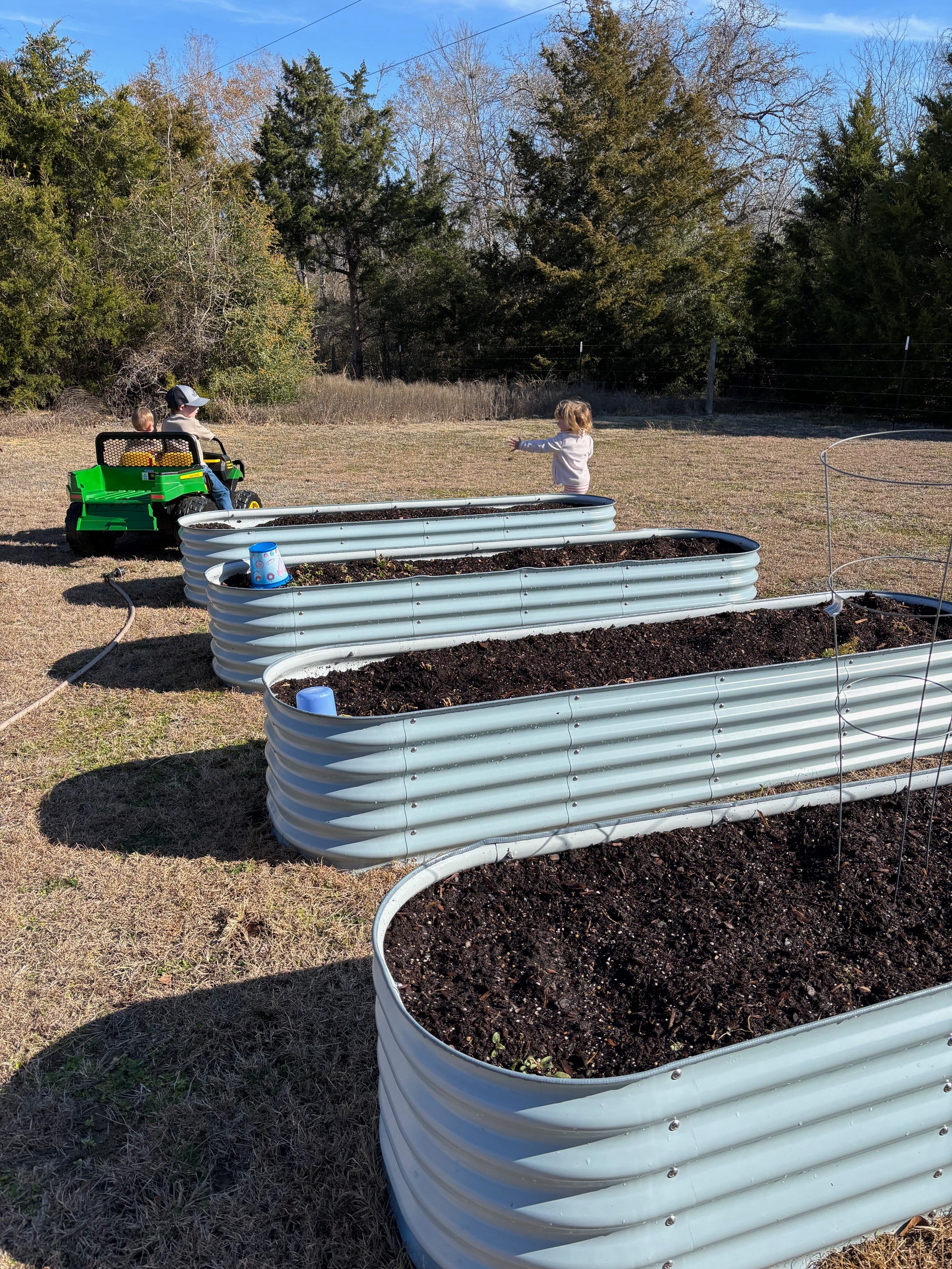 We have the Vego Garden raised beds and they’ve been wonderful for us in many ways, one reason being they’re the perfect height for the kids!